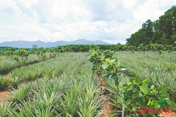 海南橡膠龍江分公司在波羅蜜中間種鳳梨。王明月