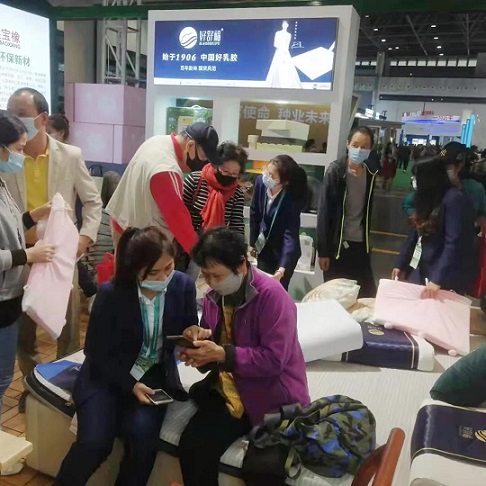 冬交會期間,好舒福乳膠制品公司共攜10余種乳膠產品到現場參展,不少參展嘉賓紛紛走進“好舒福”展位,親身感受天然乳膠寢具帶來的舒適睡眠體驗。“此次參展床墊在全國統一價的基礎上打7折,其余小件低至5折。”海南橡膠展區“好舒福”展位負責人趙鶴楠介紹。