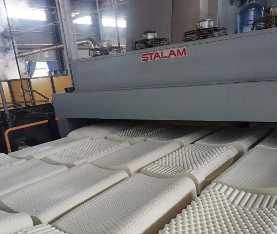 愛德福公司乳膠枕頭生產(chǎn)線完成自動化改造,產(chǎn)能增幅達(dá)32%。吳鵬 攝
