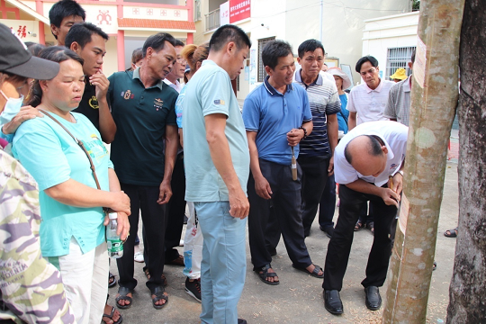 在木樁實(shí)練中,邢壯福向膠農(nóng)講述了橡膠樹種植管理、開線、如何下刀、收刀、撐刀手法、腳步等各個(gè)環(huán)節(jié)的技術(shù)要求,邊講解邊示范操作。膠農(nóng)們聽得很認(rèn)真,學(xué)習(xí)積極性非常高,爭相現(xiàn)場實(shí)踐,邢壯福不厭其煩地幫助他們糾正不規(guī)范動作。