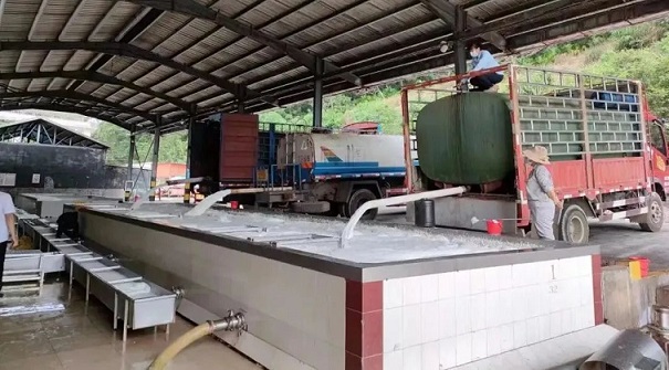 膠農(nóng)在海南橡膠收膠站點(diǎn)賣膠水。