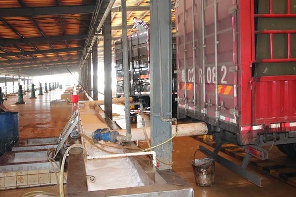 膠水車在金聯橡膠加工分公司卸膠水。簡日明