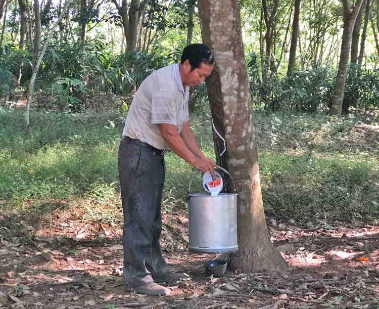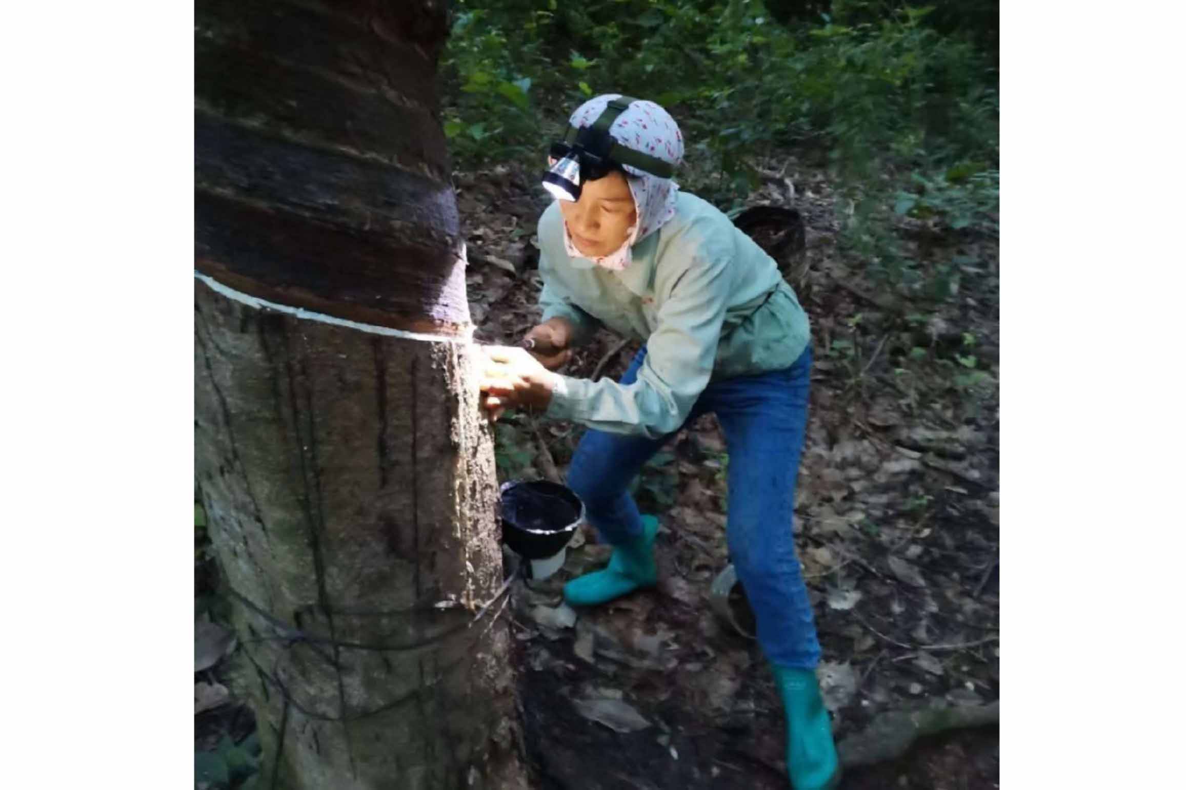 2005年,年僅19歲的溫業國接過母親承包的兩千多株割膠崗位,拿起膠刀,開始了他的割膠生涯,到如今,已與橡膠打了18年的交道。